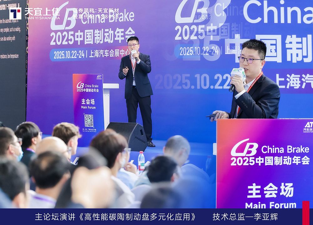 制動主會場首日,天宜上佳全資子公司江油天啟智和科技有限公司技術總監(jiān)李亞輝以《高性能碳陶制動盤多元化應用》為題發(fā)表主題演講。演講中,李亞輝圍繞碳陶制動技術在不同場景下的應用痛點與解決思路,結合實際案例闡述了高性能碳陶制動盤在新能源汽車、高端乘用車、商用車和特種車輛等領域的適配性與優(yōu)勢,為行業(yè)探索碳陶制動技術的多元化應用提供了極具價值的參考方向,推動技術交流與合作,贏得現(xiàn)場聽眾的高度認可。