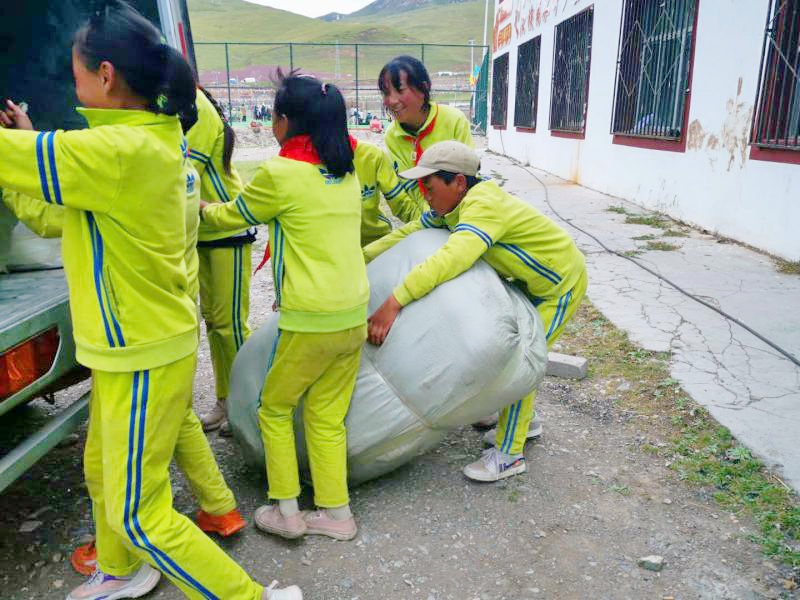 8月30日,滿載由北京天宜上佳高新材料股份有限公司(簡(jiǎn)稱“天宜上佳”)捐助愛心物資的兩輛大卡車緩緩駛?cè)肭嗪J∮駱洳刈遄灾沃蓦s多縣瓦里灘孤兒福利學(xué)校,早已做好準(zhǔn)備的孩子們飛快地跑了出來,圍著卡車歡欣跳躍、卸車搬貨……