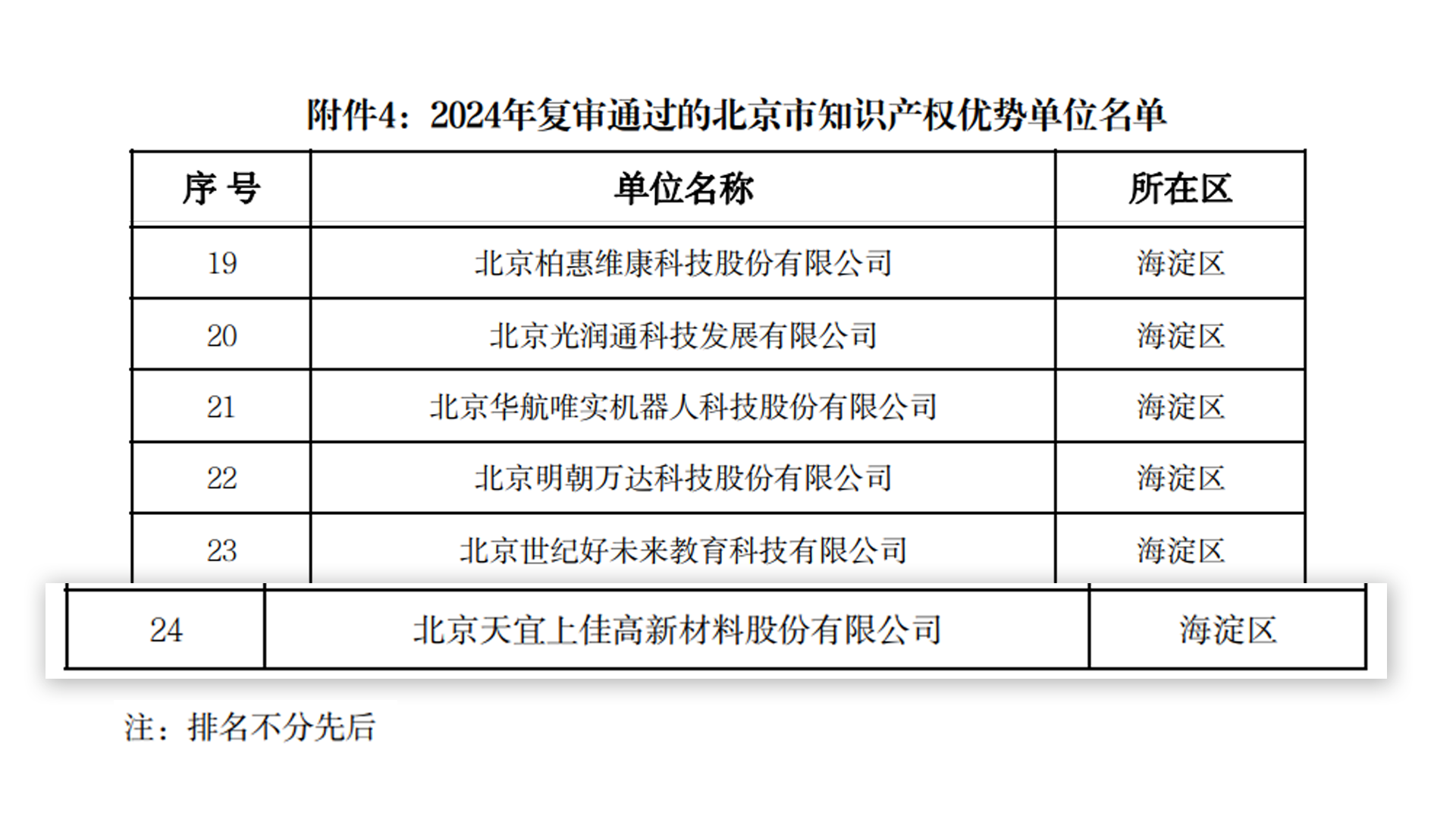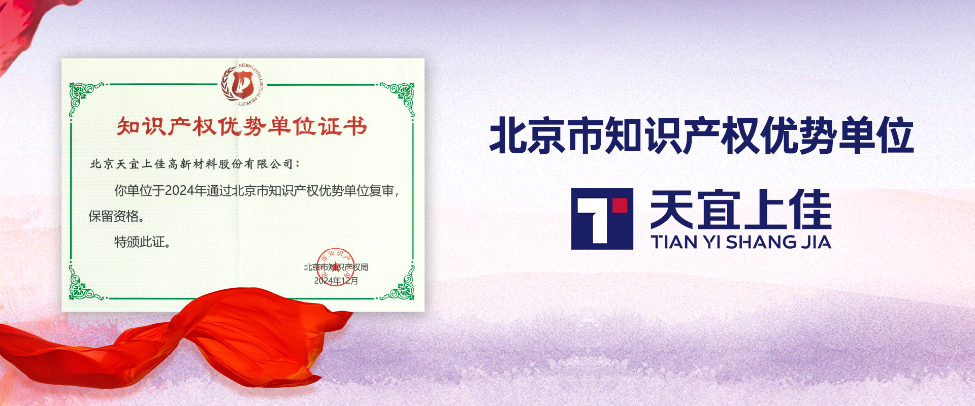 近日,北京天宜上佳高新材料股份有限公司(以下簡稱“天宜上佳”)迎來雙重喜訊:天宜上佳順利通過2024年北京市知識產(chǎn)權(quán)局嚴(yán)格復(fù)審,再次榮獲“北京市知識產(chǎn)權(quán)優(yōu)勢單位”稱號;同時,天宜上佳子公司北京天仁道和新材料有限公司(以下簡稱“天仁道和”)同步獲評“北京市知識產(chǎn)權(quán)試點(diǎn)單位”。