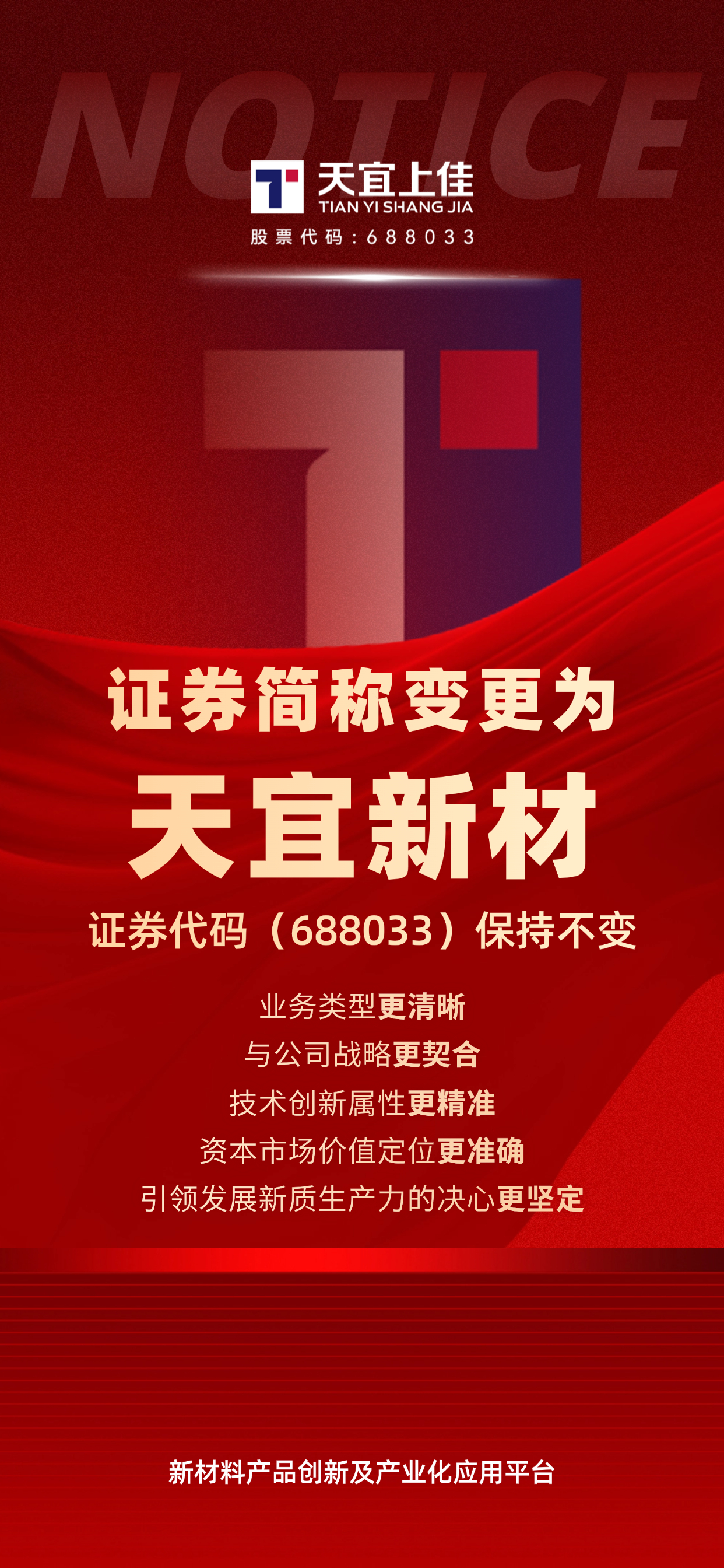 天宜上佳 | 證券簡稱變更為“天宜新材”