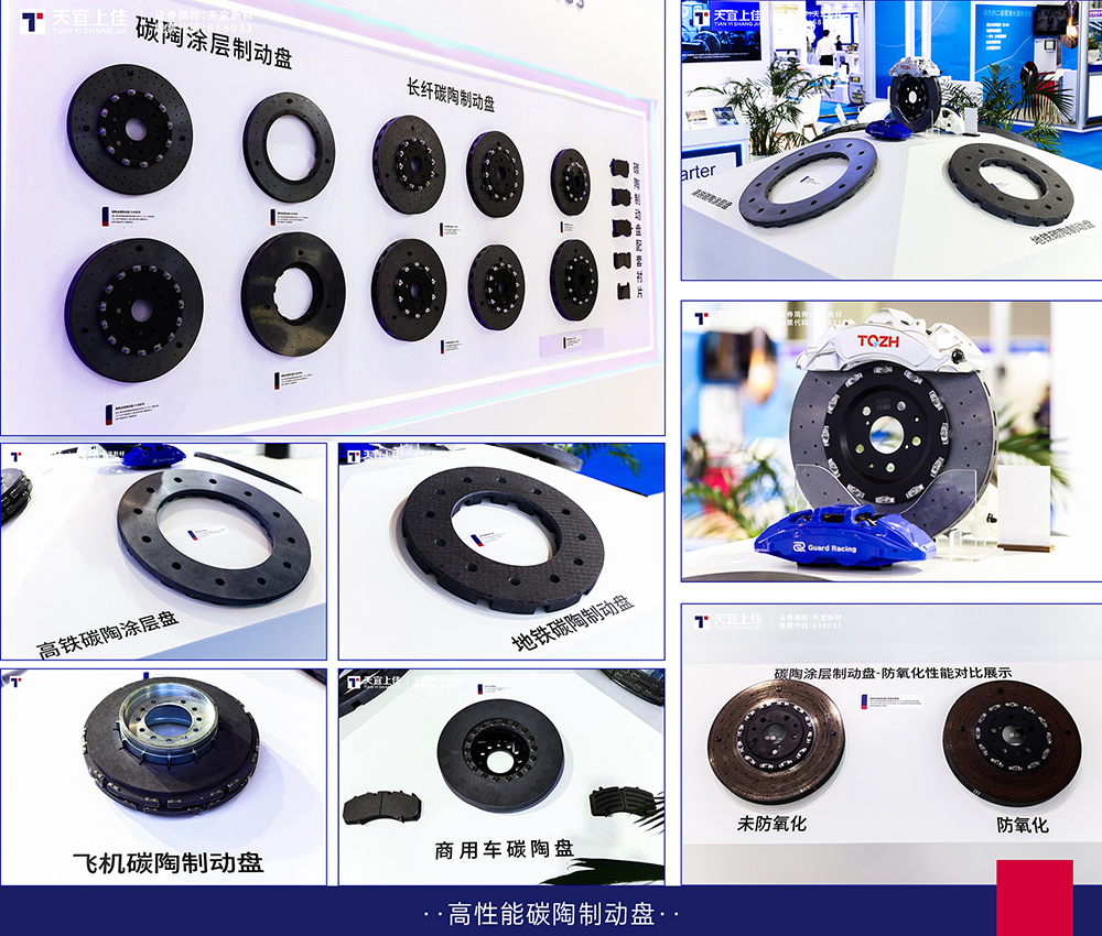 展會現(xiàn)場,天宜上佳精心設置了零距離產(chǎn)品品鑒區(qū),集中展示了核心產(chǎn)品長纖碳陶涂層制動盤、長纖碳陶制動盤和短纖碳陶制動盤等,這些產(chǎn)品不僅應用于新能源汽車,還適用在高鐵、地鐵、飛機、商用車等多場景領域;展區(qū)還特別設置了碳陶盤在高溫下防氧化燒蝕性能對比展示,凸顯在1000℃高溫工況下的盤基體碳纖維無氧化燒蝕的優(yōu)異表現(xiàn)。憑借先進的技術工藝與過硬的產(chǎn)品實力,天宜上佳展位吸引了眾多國內外客戶、同行的高度關注,并就技術細節(jié)與合作推廣進行了深入探討。